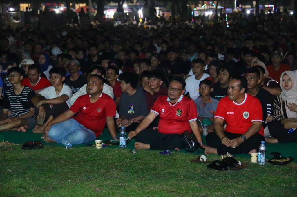 Acara nobar tersebut dihadiri oleh berbagai elemen, mulai dari Forkopimda Kudus, hingga masyarakat sekitar yang sangat antusias mendukung Timnas Indonesia.