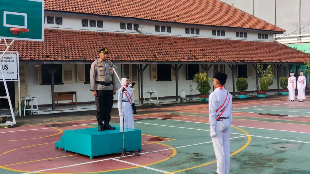 Seperti halnya Kanit Binmas Polsek Kudus Kota Iptu Parman didampingi Bhabinkamtibmas yang menyambangi SMP 3 Kudus. Senin (13/1/2025).