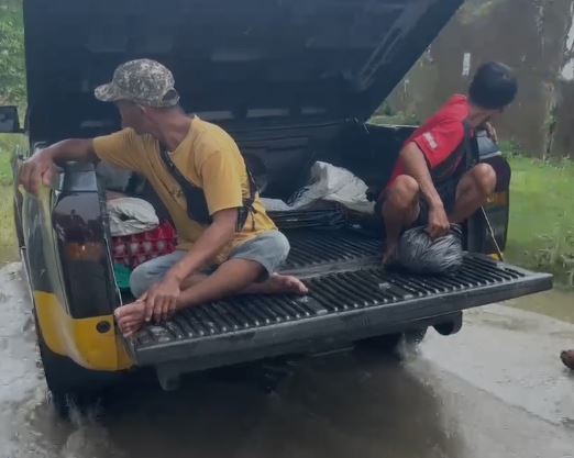 Kami menggunakan truck Samapta untuk membantu warga yang akan beraktifitas keluar rumah karena akses jalan sudah penuh air,”Ujarnya