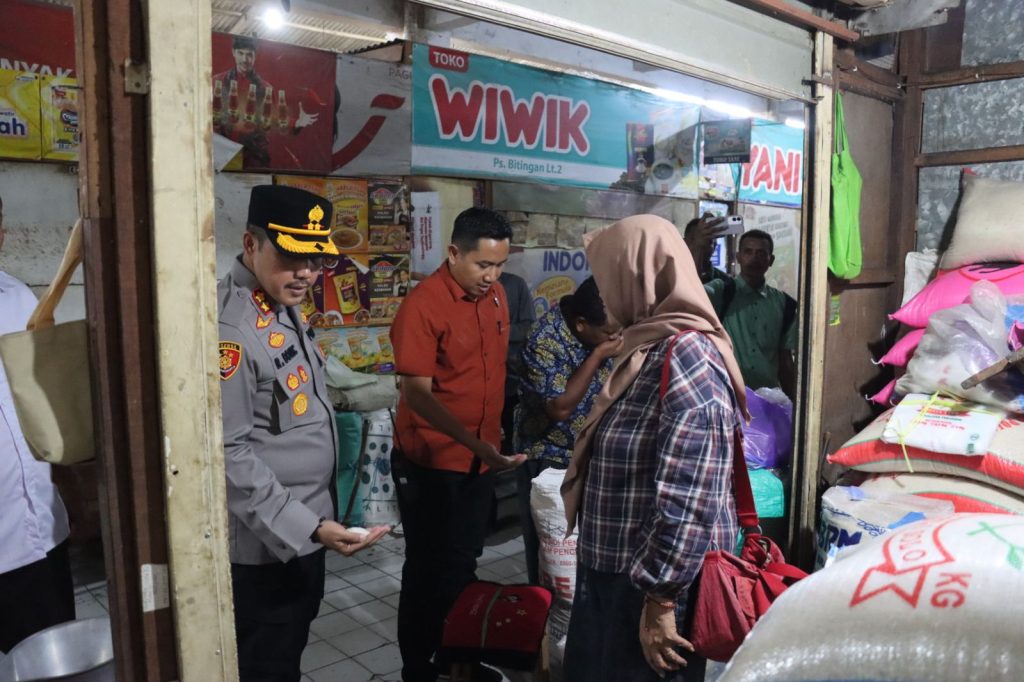 Kudus – Kapolres Kudus, AKBP Ronni Bonic bersama tim Satgas Pangan Polres Kudus, melakukan pengecekan secara langsung harga bahan pokok di Pasar Bitingan Kudus.