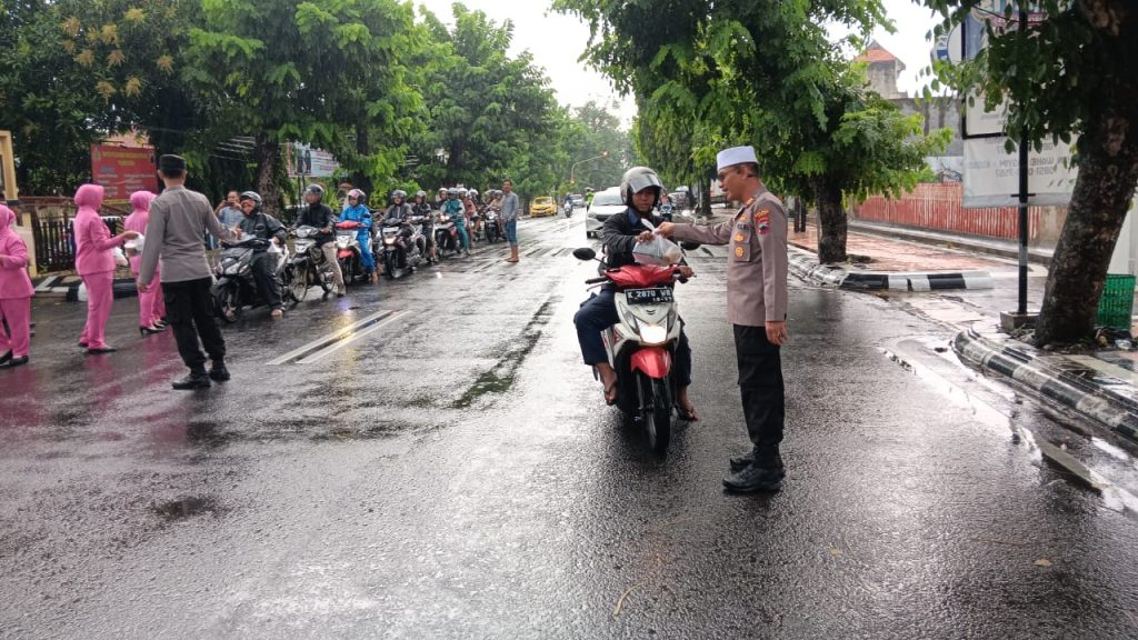 Kapolres Kudus, AKBP Ronni Bonic melalui Kapolsek Kudus Kota, AKP Subkhan mengungkapkan, kegiatan diawali dengan bagi-bagi takjil bersama Bhayangkari Polsek Kudus Kota.
