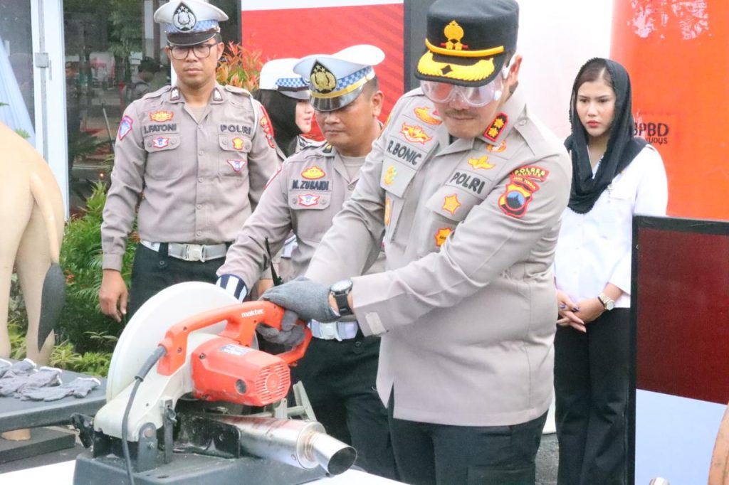 Kapolres Kudus AKBP Ronni Bonic melalui Kasat Lantas Iptu Royke Darean Noldy mengatakan Sebanyak 1875 knalpot brong yang disita selama operasi penegakan lalu lintas periode Agustus – Januari 2025 juga dimusnahkan dengan cara dipotong menggunakan mesin gerinda listrik.
