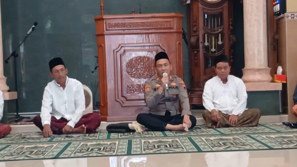 Kapolsek Dawe, usai salat Jumat memberikan himbauan kamtibmas dan mengajak para jamaah untuk meningkatkan keamanan di lingkungan masing-masing.