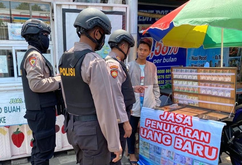 Salah satunya yakni di Jalan Sunan Kudus. Sejumlah anggota Satsamapta Polres Kudus mendatangi para penyedia jasa penukaran uang di jalan Sunan Kudus.