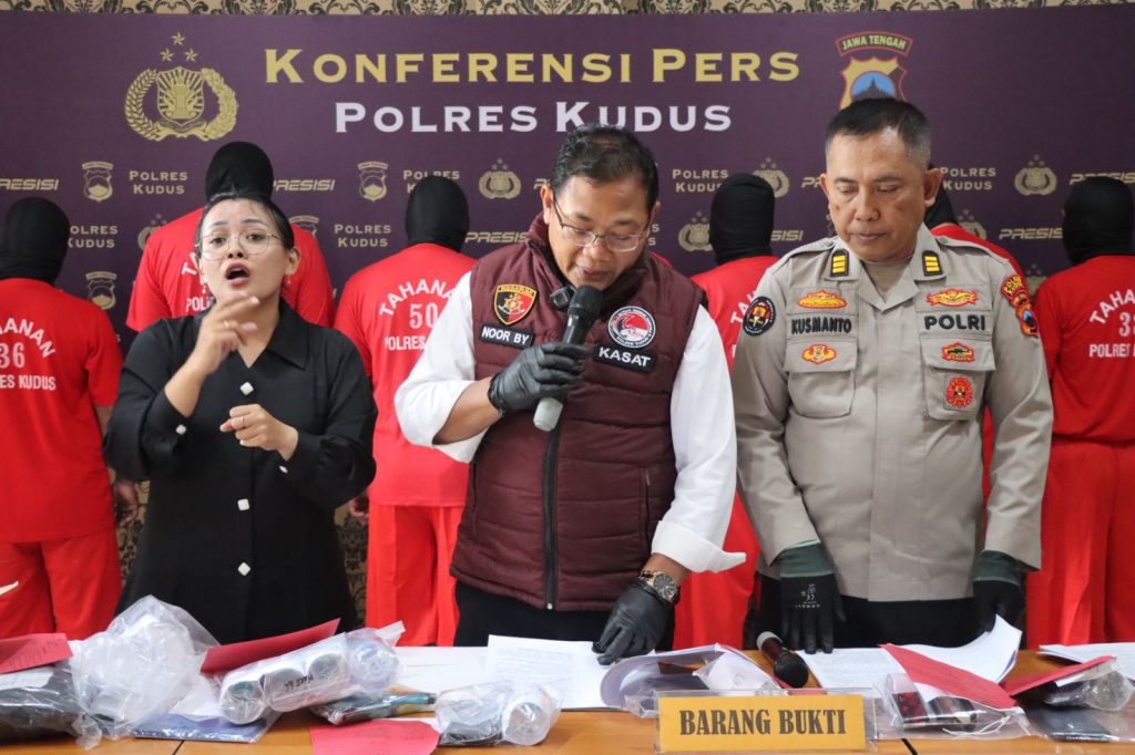 “Dari hasil pengungkapan ini, ada sembilan kasus dengan sebelas tersangka. Mereka ada yang kami amankan di Kudus, dan setelah dilakukan pengembangan, ada pula yang kami tangkap di Grobogan,” ungkap AKBP Heru saat konferensi pers di Mapolres Kudus, Senin (8/9/2025).