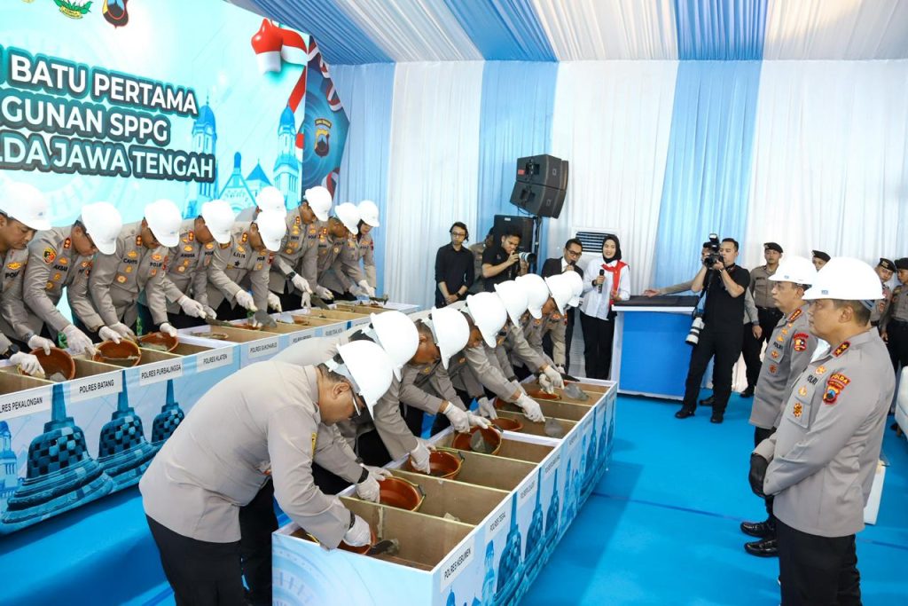 Polda Jateng, Kota Semarang | Kapolri Jenderal Polisi Drs. Listyo Sigit Prabowo, M.Si. memimpin prosesi ground breaking pembangunan 27 Sentra Produksi Pangan Gizi (SPPG) Polri di Jawa Tengah, Jumat (17/10/2025). Kegiatan simbolis tersebut dilaksanakan di SPPG Polri Gedawang, Banyumanik, Kota Semarang, menandai dimulainya pembangunan tahap lanjutan SPPG Polri di wilayah ini.