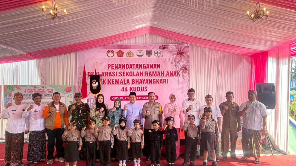 Kudus – Kapolres Kudus AKBP Heru Dwi Purnomo bersama Bupati Kudus Sam’ani Intakoris menghadiri kegiatan Penandatanganan Deklarasi Sekolah Ramah Anak di TK Kemala Bhayangkari 44 dan 45 Kudus, Kamis (20/11/2025).