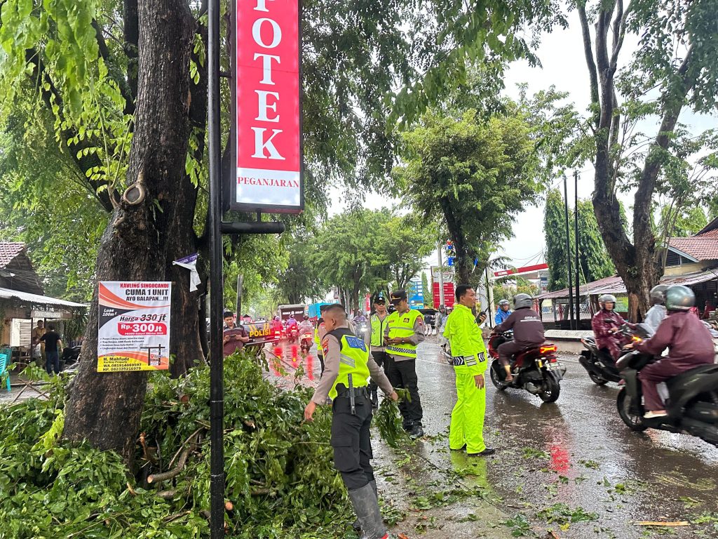 Respons Cepat Polres Kudus Atasi Pohon Tumbang Saat Hujan Angin