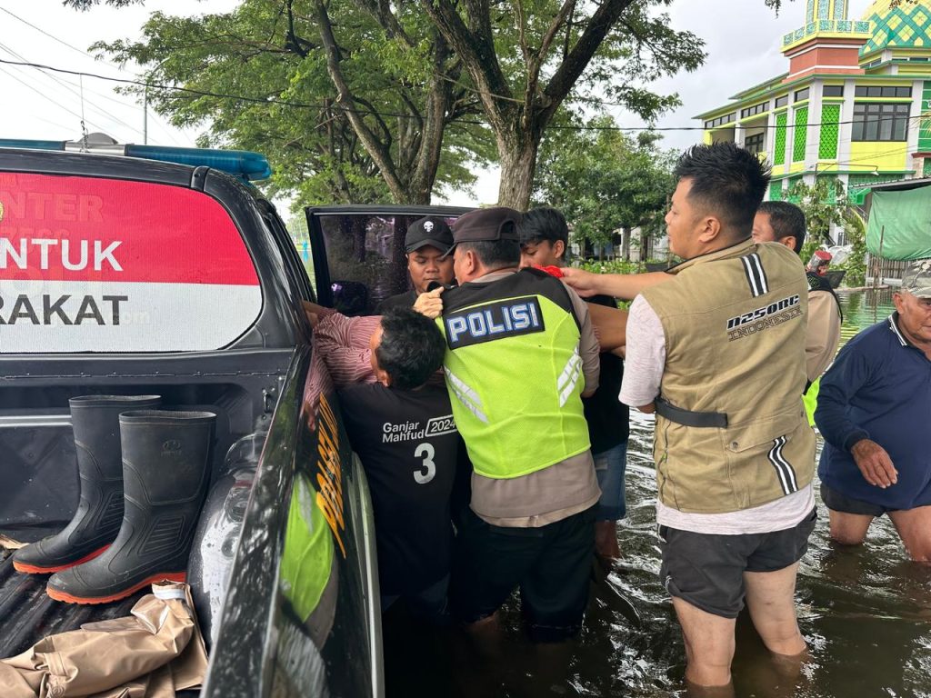 Terjang Banjir Demi Kemanusiaan, Polisi Kudus Evakuasi Warga Stroke ke Rumah Sakit