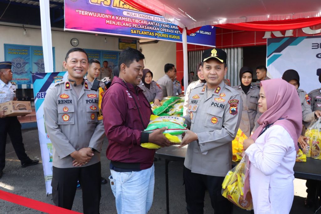 Kudus – Menjelang bulan suci Ramadhan 1447 Hijriah, Polres Kudus menggelar kegiatan Gerakan Pangan Murah untuk membantu masyarakat mendapatkan kebutuhan pokok dengan harga terjangkau yang berlangsung di depan Pos Patwal Simpang Tujuh Kota Kudus, Jumat (13/3/2026) pagi.