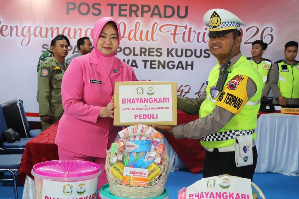 Kudus – Kapolres Kudus bersama Bhayangkari Cabang Kudus melakukan kunjungan ke sejumlah pos pengamanan dalam rangka memastikan kesiapan personel yang bertugas pada pengamanan arus mudik dan Hari Raya Idulfitri 1447 Hijriyah .