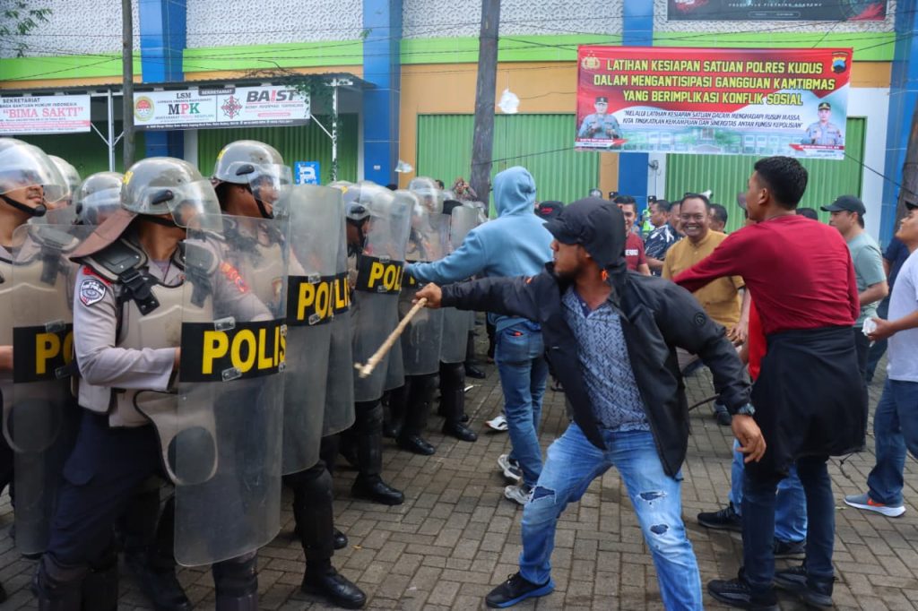 Kegiatan tersebut melibatkan personel gabungan dari satuan fungsi di Polres Kudus serta jajaran Polsek. Latihan dilaksanakan secara bertahap dan terstruktur, mulai dari pembentukan formasi dasar hingga simulasi penanganan massa dalam berbagai eskalasi situasi.