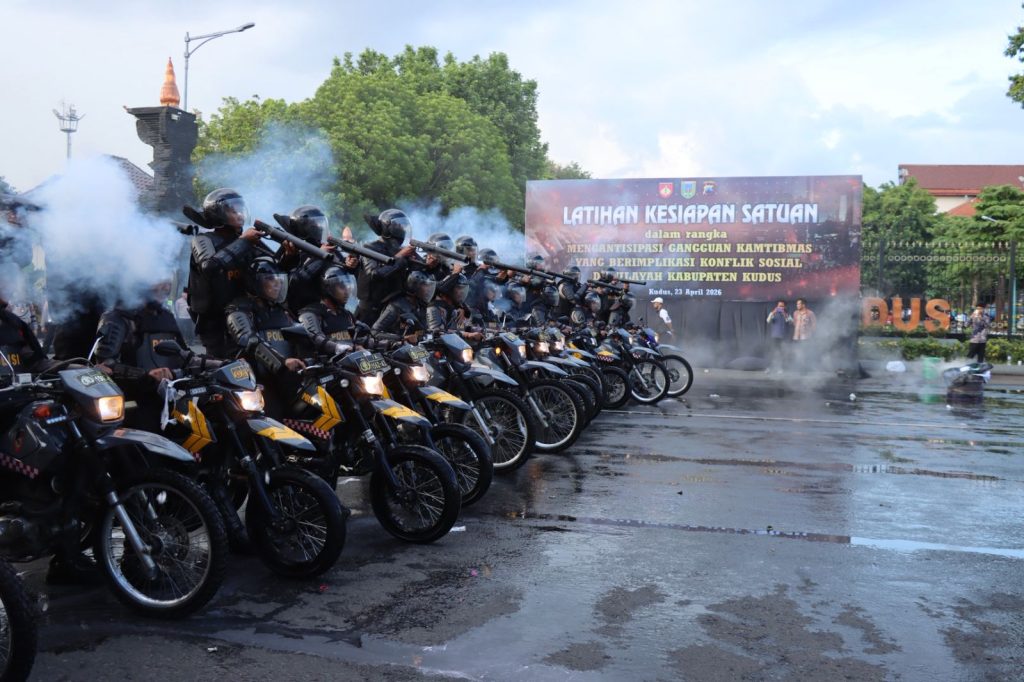 Kudus – Sinergi lintas instansi menjadi fokus utama dalam latihan kesiapan satuan yang digelar Polres Kudus untuk mengantisipasi gangguan kamtibmas yang berpotensi menimbulkan konflik sosial di wilayah Kabupaten Kudus, Kamis (23/4/2026).